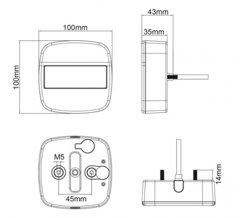 Размеры: Длина*Высота*Глубина: 100*100*35 мм.