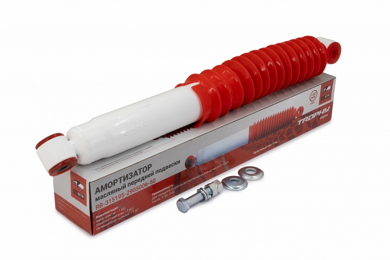 Амортизатор УАЗ Хантер +50 мм (передний, масляный) TROPHY (шток 18 мм, пыльник силикон)