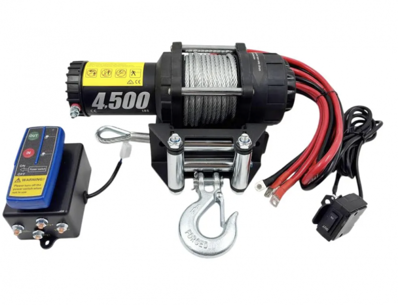 Лебедка для квадроцикла электрическая 12В Electric winch PRO&TOP 4500 lbs / 2040 кг стальной трос (для квадроцикла, снегохода, караката, вездехода) Лебедка Electric Winch 4500 lbs, серии PRO&TOP - это отличный выбор для вашего квадроцикла или снегохода!