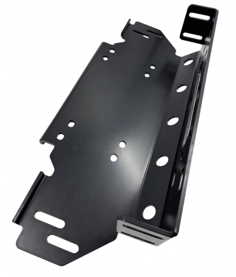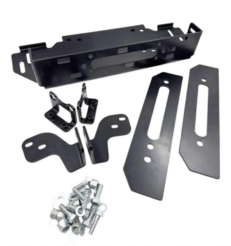 Площадка под лебедку в штатный бампер Jeep Wrangler JL / Джип Вранглер 2018 - 2023г.в "4х4 Вятка"С лебедкой, установленной на такой площадке, внешне внедорожник остается почти в штатном заводском исполнении, но неподготовленным к бездорожью его уже не назовешь. Отличительной особенностью площадки "4х4 Вятка" является её особо прочная усиленная конструкция. Площадка устанавливается на раму автомобиля. Чёрное порошковое покрытие защищает от коррозии в любых условиях эксплуатации и не боится самых агрессивных реагентов.